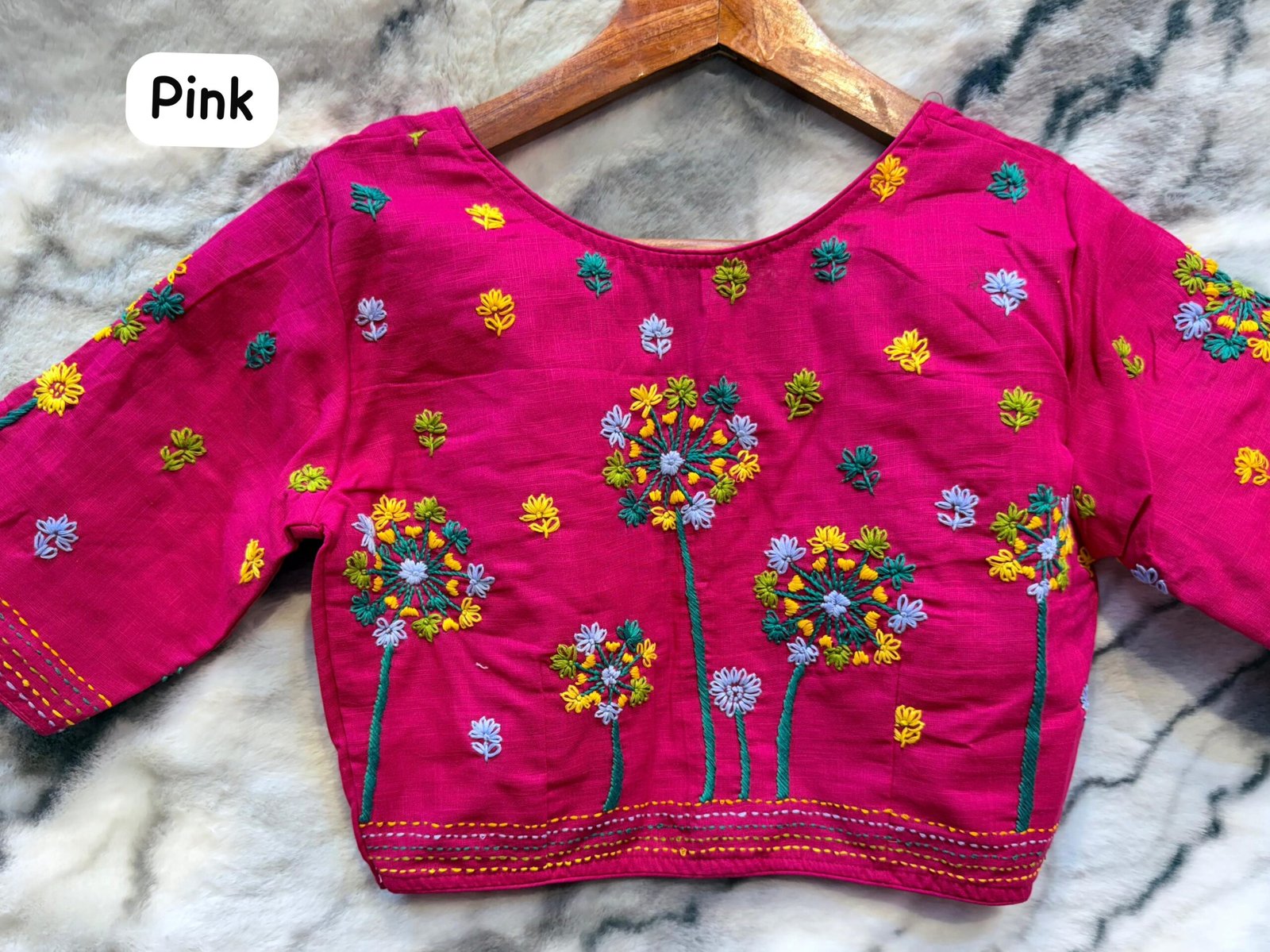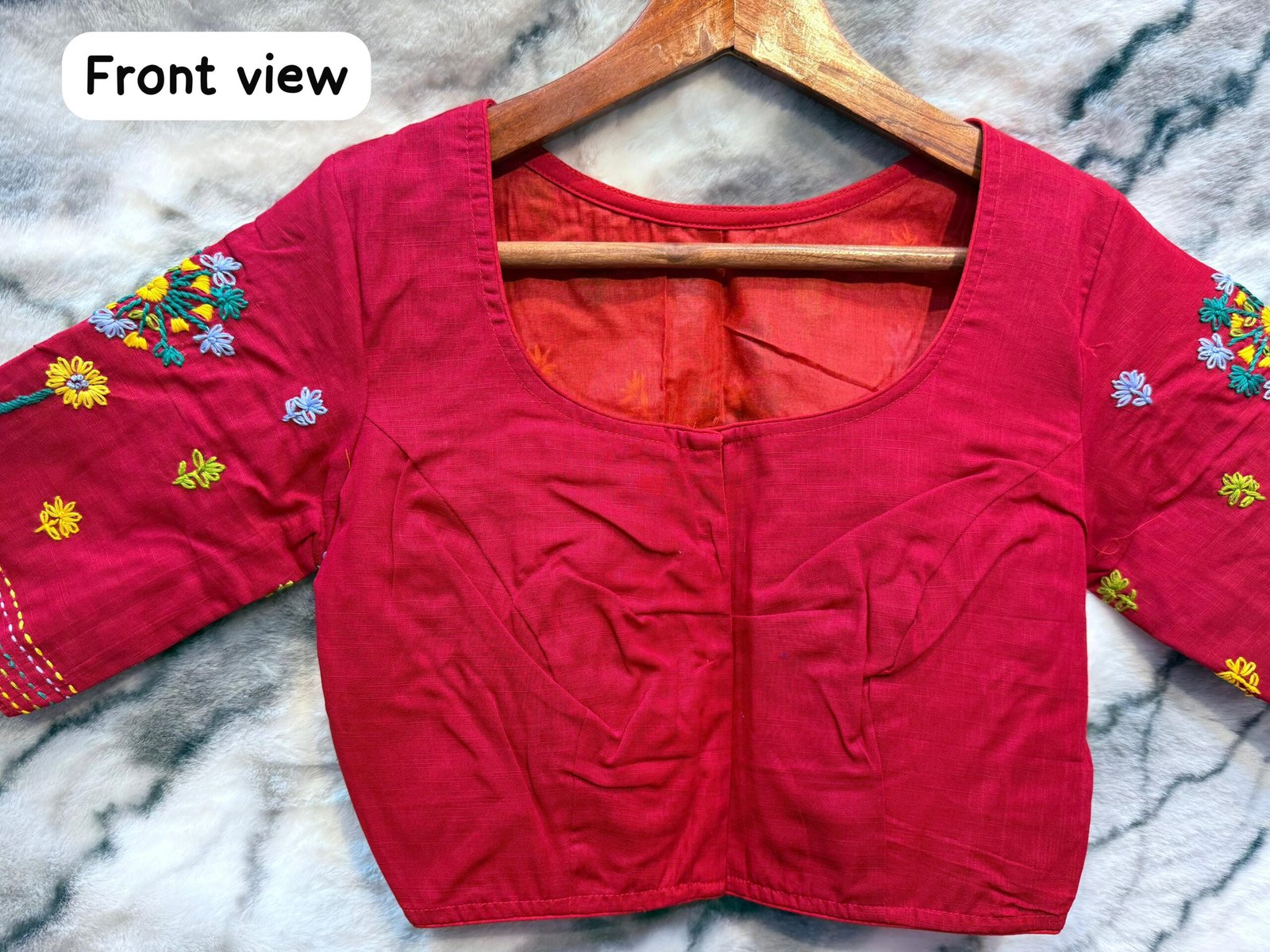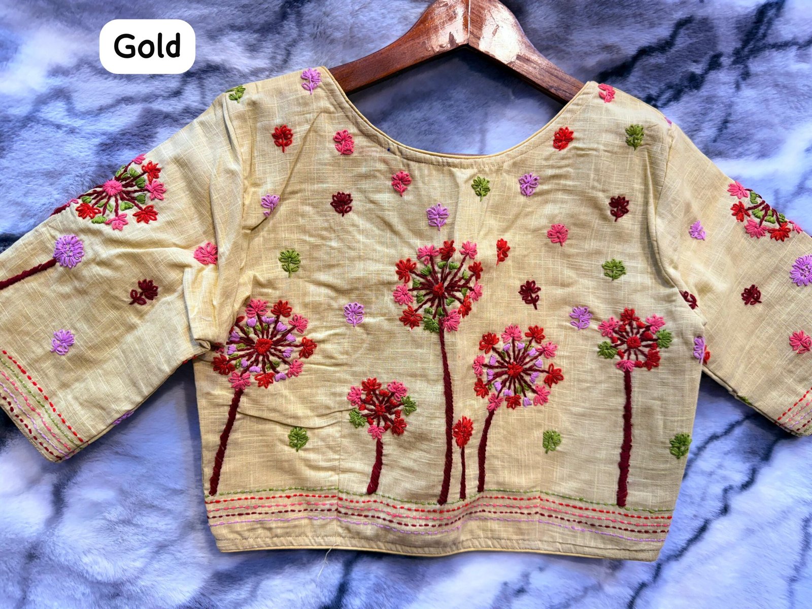 Hand work๐๐ Fabric :- Cotton Round Neck Glass Sleeves Hand work Size :- 34-44 upto adjustable