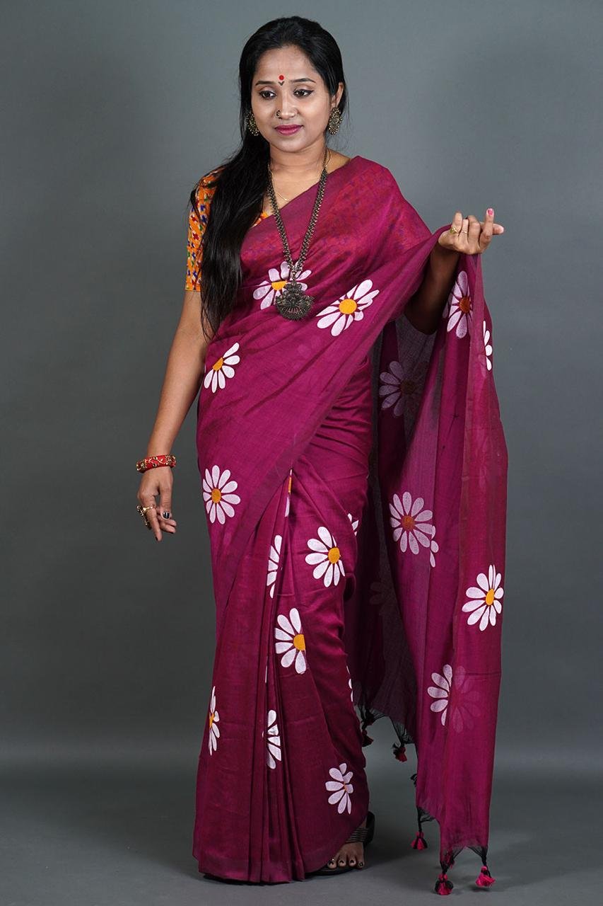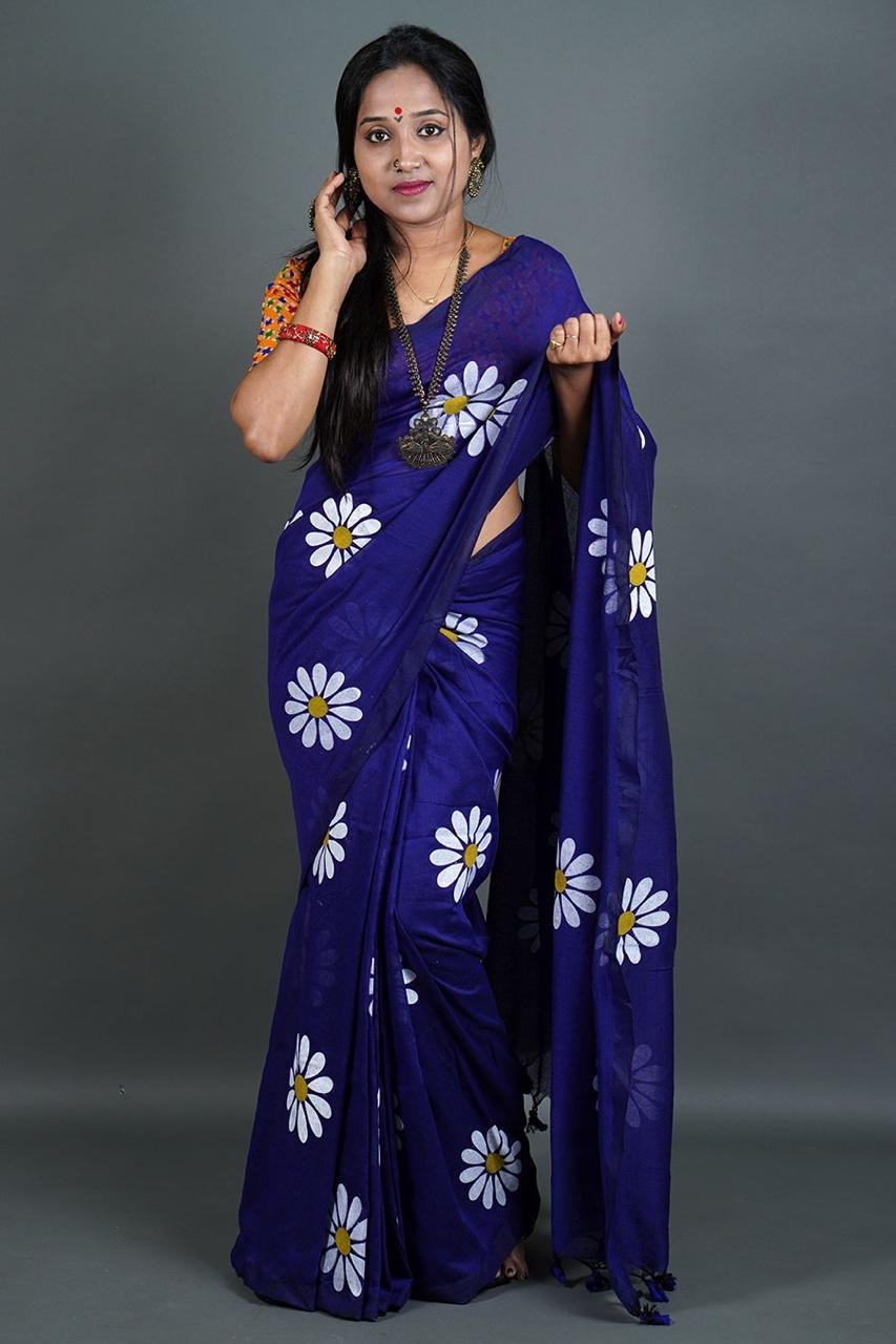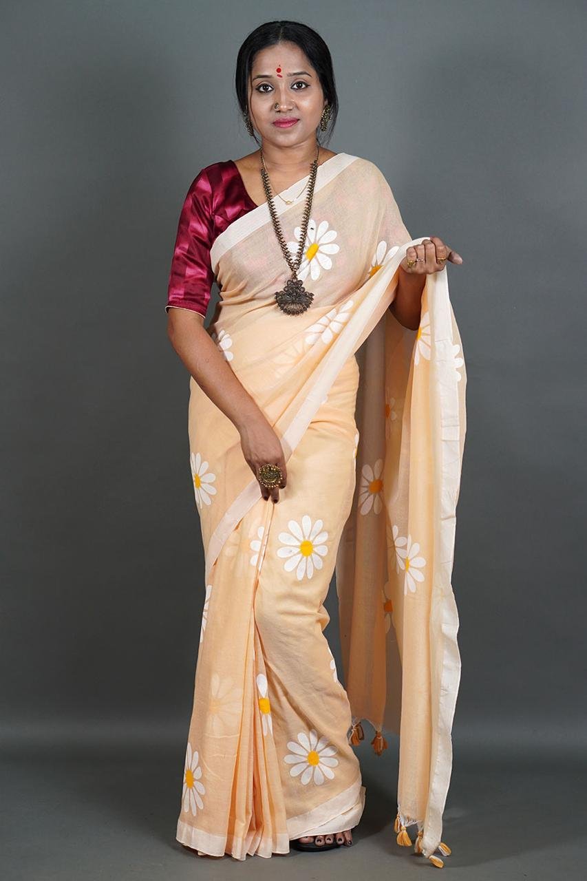 Handloom Best Quality Khadi by cotton sarees with brush paint