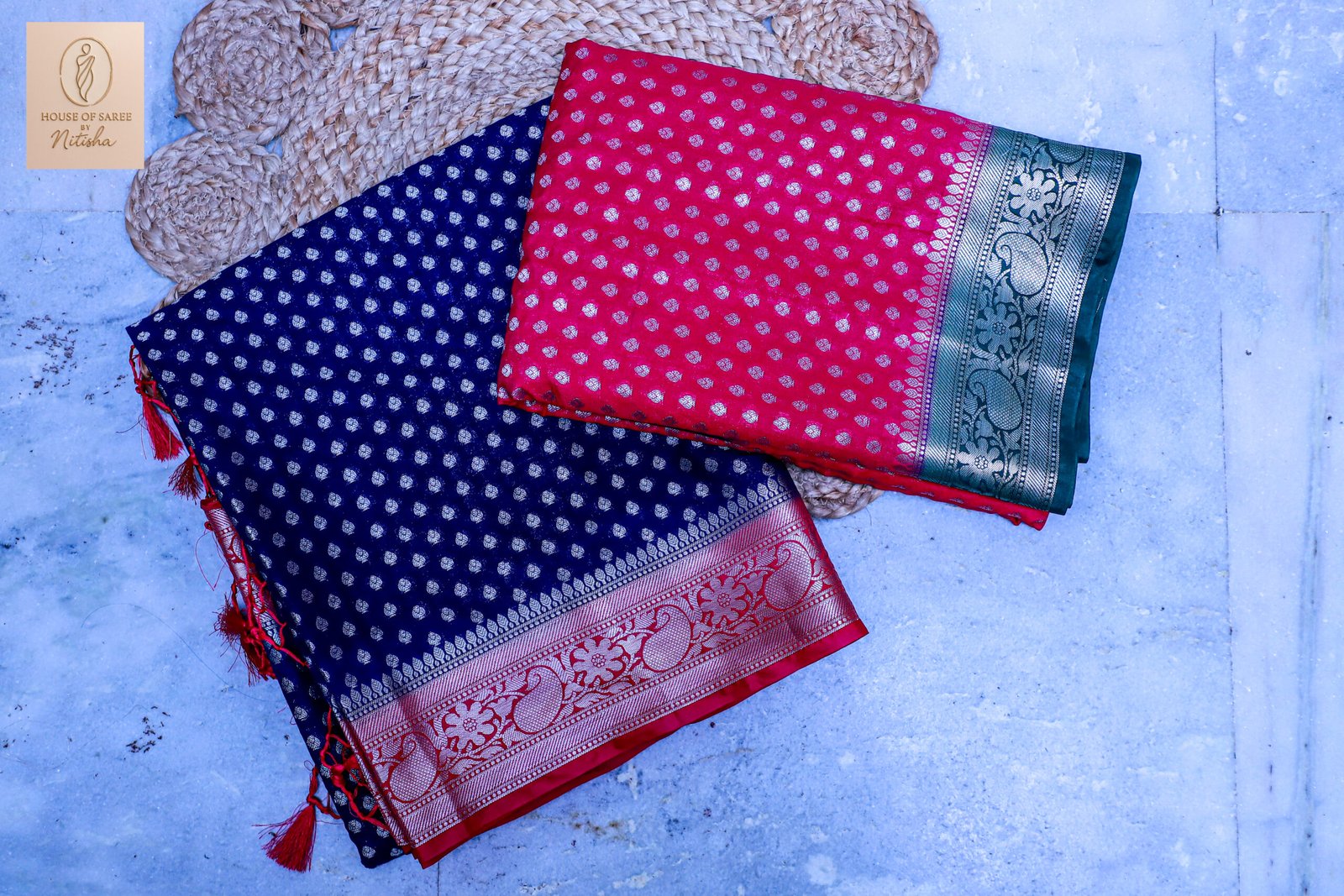 Discover the epitome of traditional luxury with this exquisite Banarasi silk saree from House of Saree. Meticulously crafted by skilled artisans, this saree is woven from the finest silk, offering a rich texture and a graceful, flowing drape.